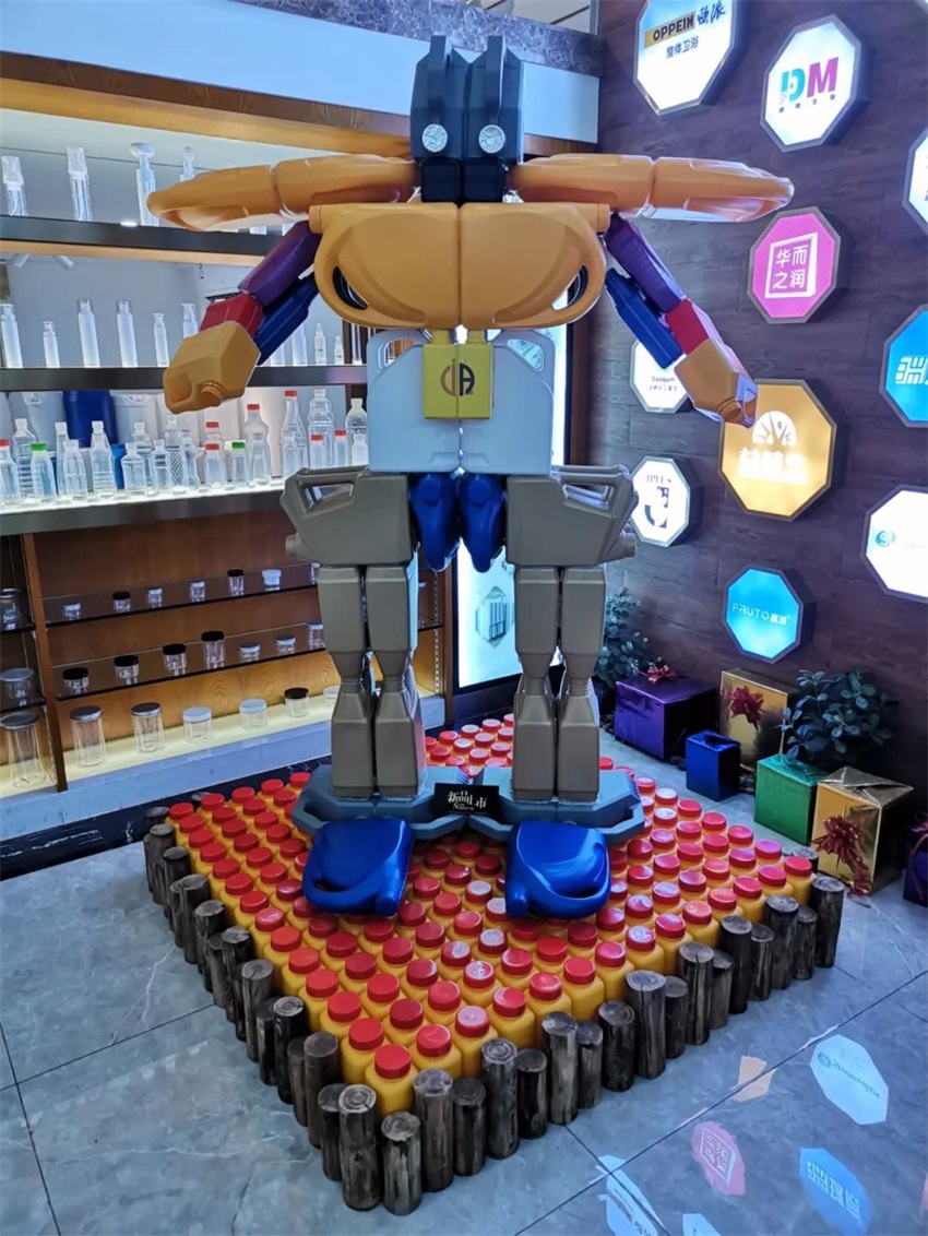 越前隊采用機油瓶系列產品進行機器人造型拼接,機器人代表科技,代表未來,同時也象征著對未來的目標和向往!寓意著公司以后能不斷發(fā)展壯大、向美好的未來奮力前行!只有想不到,沒有做不到,物盡所用,人盡所能,我們就是無所不能創(chuàng)意無限的變形金剛。