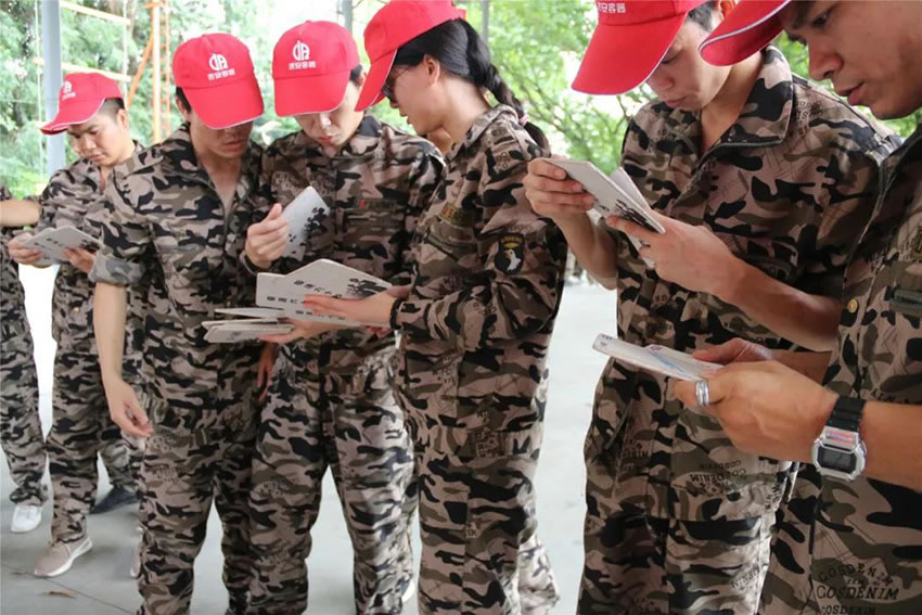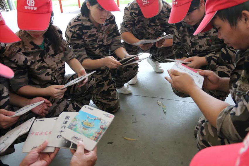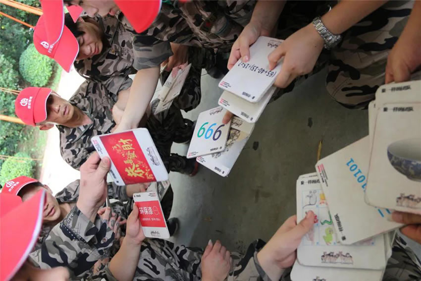 把團(tuán)隊(duì)分為四組進(jìn)行PK,教官事先準(zhǔn)備好30張牌,每張牌代表這數(shù)字1~30,需要通過(guò)聯(lián)想的方式解密每張牌對(duì)應(yīng)的數(shù)字,每組人員每次有1分鐘時(shí)間,把地上的牌按照1~30的順序由隊(duì)長(zhǎng)交給教官,在1分鐘內(nèi)累計(jì)拿到的牌數(shù)越多積分越高,在比賽中犯規(guī)將扣取相應(yīng)分?jǐn)?shù),6輪過(guò)后累計(jì)分?jǐn)?shù)則為組總分。