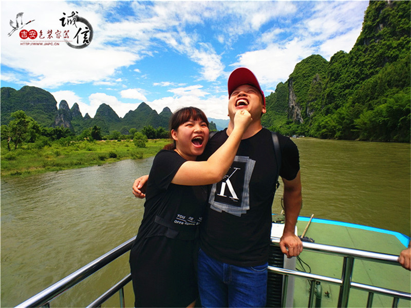 用餐后前往位于陽(yáng)朔擁有1400多年歷史的【興坪古鎮(zhèn)】,搭乘游船欣賞【興坪漓江】。興坪漓江段是漓江最精華,風(fēng)光最美的一段:兩岸群峰競(jìng)秀、碧水球流,沿岸有溜圓扭卷的螺螄山、挺肚憨笑的羅漢山、一僧一尼正面對(duì)面斗嘴的僧尼山、20元人民幣背景——黃布倒影等景點(diǎn);首批出游的同事看到的是陽(yáng)光明媚的桂林,第二批觀賞到的則是“煙雨桂林”,蒙蒙中透著一股朦朧的美。