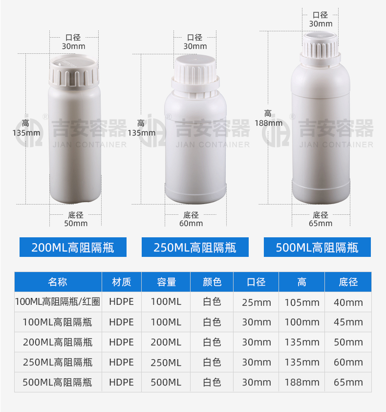 東莞市吉安包裝容器有限公司創(chuàng)立于2000年8月1日,是中國(guó)知名品牌企業(yè)。已通過ISO 9001質(zhì)量管理體系資質(zhì)認(rèn)證,加入了中國(guó)中空協(xié)會(huì),并獲得《中國(guó)知名品牌》,《國(guó)家標(biāo)準(zhǔn)合格產(chǎn)品》,《全國(guó)重合同守信用AAA級(jí)企業(yè)》,《質(zhì)量.服務(wù).誠(chéng)信AAA企業(yè)》等榮譽(yù)稱號(hào)。根據(jù)材質(zhì)的不同,我們的產(chǎn)品分為塑料容器、鐵質(zhì)容器、鋁材容器、玻璃容器、紙質(zhì)容器等五大類。按產(chǎn)品的名稱分為塑料桶、塑料瓶、包裝桶、涂料桶、機(jī)油桶、油脂桶、化工罐、膠水瓶、鐵桶、鐵罐、鋁瓶、鋁罐、阻隔瓶、高阻隔瓶等,容量從3ML至1000L多種規(guī)格,多種款式。適合包裝的產(chǎn)品包括:化學(xué)試劑、化工原料、化工助劑、飼料添加劑、油墨、油漆、樹脂農(nóng)藥、日用化學(xué)品、聚氨脂、膠粘劑,廣泛應(yīng)用于化工、建筑、食品、醫(yī)療、生物等各領(lǐng)域。