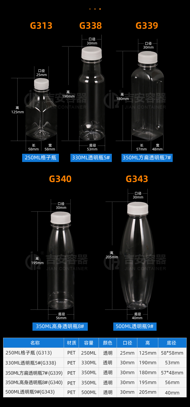 | 品名:250mlPET格子瓶(G313) | |