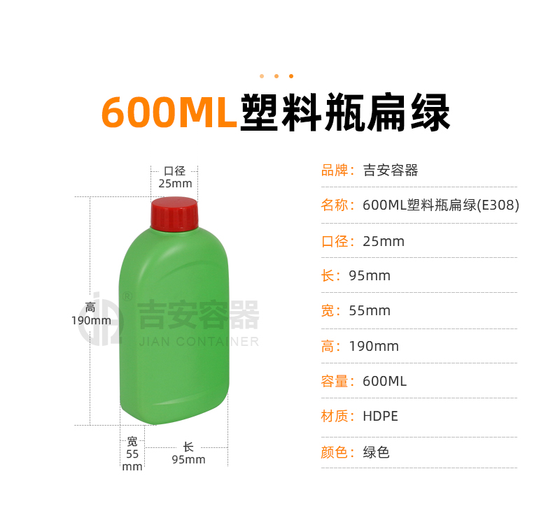 | 品名:600ml綠色扁瓶(E308) | |