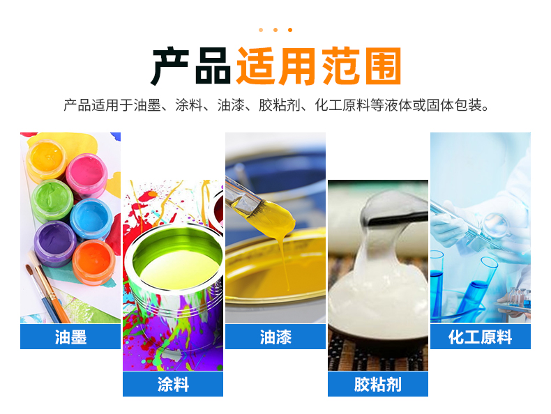 東莞市吉安包裝容器有限公司創(chuàng)立于2000年8月1日,是中國知名品牌企業(yè)。已通過ISO 9001質(zhì)量管理體系資質(zhì)認證,加入了中國中空協(xié)會,并獲得《中國知名品牌》,《國家標準合格產(chǎn)品》,《全國重合同守信用AAA級企業(yè)》,《質(zhì)量.服務(wù).誠信AAA企業(yè)》等榮譽稱號。根據(jù)材質(zhì)的不同,我們的產(chǎn)品分為塑料容器、鐵質(zhì)容器、鋁材容器、玻璃容器、紙質(zhì)容器等五大類。按產(chǎn)品的名稱分為塑料桶、塑料瓶、包裝桶、涂料桶、機油桶、油脂桶、化工罐、膠水瓶、鐵桶、鐵罐、鋁瓶、鋁罐、阻隔瓶、高阻隔瓶等,容量從3ML至1000L多種規(guī)格,多種款式。適合包裝的產(chǎn)品包括:化學試劑、化工原料、化工助劑、飼料添加劑、油墨、油漆、樹脂農(nóng)藥、日用化學品、聚氨脂、膠粘劑,廣泛應用于化工、建筑、食品、醫(yī)療、生物等各領(lǐng)域。