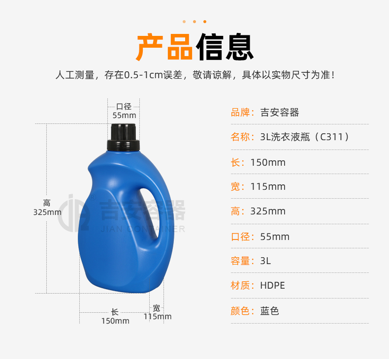 東莞市吉安包裝容器有限公司創(chuàng)立于2000年8月1日,是中國(guó)知名品牌企業(yè)。已通過(guò)ISO 9001質(zhì)量管理體系資質(zhì)認(rèn)證,加入了中國(guó)中空協(xié)會(huì),并獲得《中國(guó)知名品牌》,《國(guó)家標(biāo)準(zhǔn)合格產(chǎn)品》,《全國(guó)重合同守信用AAA級(jí)企業(yè)》,《質(zhì)量.服務(wù).誠(chéng)信AAA企業(yè)》等榮譽(yù)稱號(hào)。根據(jù)材質(zhì)的不同,我們的產(chǎn)品分為塑料容器、鐵質(zhì)容器、鋁材容器、玻璃容器、紙質(zhì)容器等五大類。按產(chǎn)品的名稱分為塑料桶、塑料瓶、包裝桶、涂料桶、機(jī)油桶、油脂桶、化工罐、膠水瓶、鐵桶、鐵罐、鋁瓶、鋁罐、阻隔瓶、高阻隔瓶等,容量從3ML至1000L多種規(guī)格,多種款式。適合包裝的產(chǎn)品包括:化學(xué)試劑、化工原料、化工助劑、飼料添加劑、油墨、油漆、樹(shù)脂農(nóng)藥、日用化學(xué)品、聚氨脂、膠粘劑,廣泛應(yīng)用于化工、建筑、食品、醫(yī)療、生物等各領(lǐng)域。