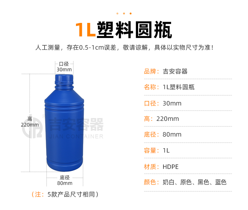 東莞市吉安包裝容器有限公司創(chuàng)立于2000年8月1日,是中國(guó)知名品牌企業(yè)。已通過(guò)ISO 9001質(zhì)量管理體系資質(zhì)認(rèn)證,加入了中國(guó)中空協(xié)會(huì),并獲得《中國(guó)知名品牌》,《國(guó)家標(biāo)準(zhǔn)合格產(chǎn)品》,《全國(guó)重合同守信用AAA級(jí)企業(yè)》,《質(zhì)量.服務(wù).誠(chéng)信AAA企業(yè)》等榮譽(yù)稱號(hào)。根據(jù)材質(zhì)的不同,我們的產(chǎn)品分為塑料容器、鐵質(zhì)容器、鋁材容器、玻璃容器、紙質(zhì)容器等五大類。按產(chǎn)品的名稱分為塑料桶、塑料瓶、包裝桶、涂料桶、機(jī)油桶、油脂桶、化工罐、膠水瓶、鐵桶、鐵罐、鋁瓶、鋁罐、阻隔瓶、高阻隔瓶等,容量從3ML至1000L多種規(guī)格,多種款式。適合包裝的產(chǎn)品包括:化學(xué)試劑、化工原料、化工助劑、飼料添加劑、油墨、油漆、樹(shù)脂農(nóng)藥、日用化學(xué)品、聚氨脂、膠粘劑,廣泛應(yīng)用于化工、建筑、食品、醫(yī)療、生物等各領(lǐng)域。