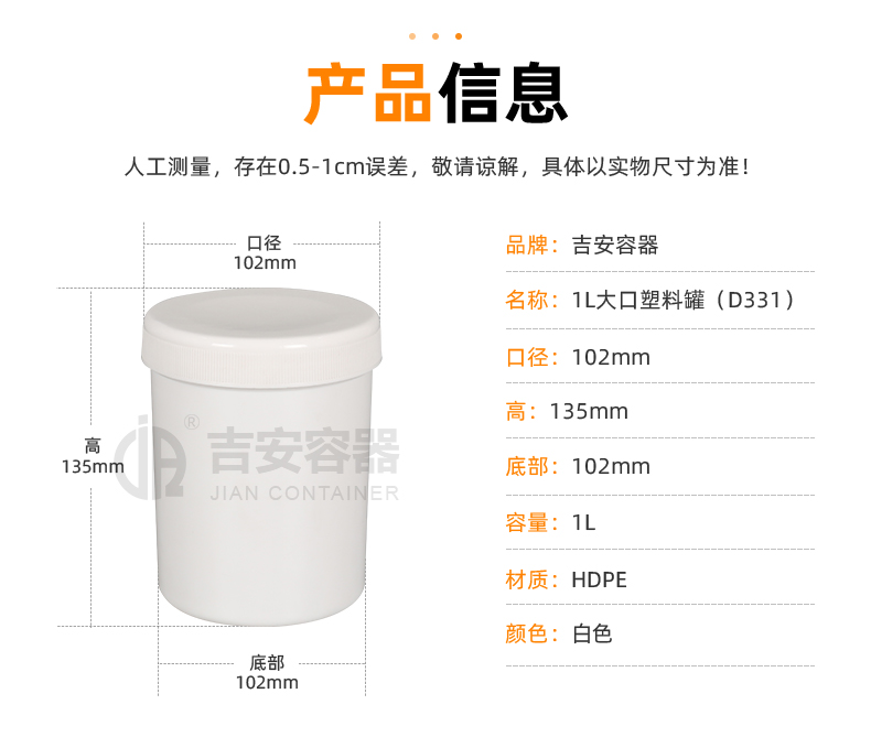 東莞市吉安包裝容器有限公司創(chuàng)立于2000年8月1日,是中國(guó)知名品牌企業(yè)。已通過(guò)ISO 9001質(zhì)量管理體系資質(zhì)認(rèn)證,加入了中國(guó)中空協(xié)會(huì),并獲得《中國(guó)知名品牌》,《國(guó)家標(biāo)準(zhǔn)合格產(chǎn)品》,《全國(guó)重合同守信用AAA級(jí)企業(yè)》,《質(zhì)量.服務(wù).誠(chéng)信AAA企業(yè)》等榮譽(yù)稱號(hào)。根據(jù)材質(zhì)的不同,我們的產(chǎn)品分為塑料容器、鐵質(zhì)容器、鋁材容器、玻璃容器、紙質(zhì)容器等五大類。按產(chǎn)品的名稱分為塑料桶、塑料瓶、包裝桶、涂料桶、機(jī)油桶、油脂桶、化工罐、膠水瓶、鐵桶、鐵罐、鋁瓶、鋁罐、阻隔瓶、高阻隔瓶等,容量從3ML至1000L多種規(guī)格,多種款式。適合包裝的產(chǎn)品包括:化學(xué)試劑、化工原料、化工助劑、飼料添加劑、油墨、油漆、樹脂農(nóng)藥、日用化學(xué)品、聚氨脂、膠粘劑,廣泛應(yīng)用于化工、建筑、食品、醫(yī)療、生物等各領(lǐng)域。