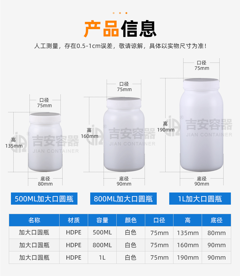 | 品名:500ml~1L加大口塑料瓶(E187) | |