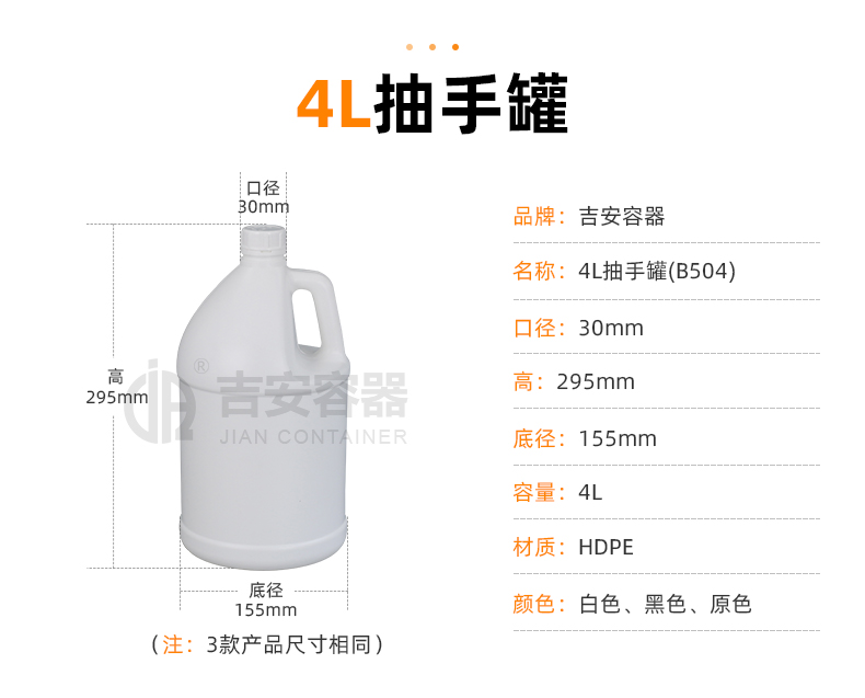 小口塑料桶:采用全新聚乙烯原料吹塑工藝制作而成,具有耐腐蝕,耐酸堿特性,小口設(shè)計(jì)密封性能強(qiáng),廣泛應(yīng)用于化工、清潔、食品、添加劑、汽車等各行業(yè)液體包裝。