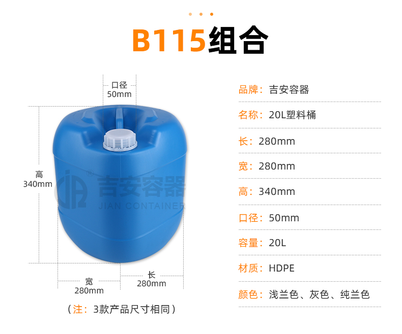 采用HDPE原料吹塑而成,該產(chǎn)品密封性能強,配備內(nèi)蓋,可重疊,節(jié)約空間,具耐酸堿特性,產(chǎn)品經(jīng)過密封測驗,堆碼、跌落測試。