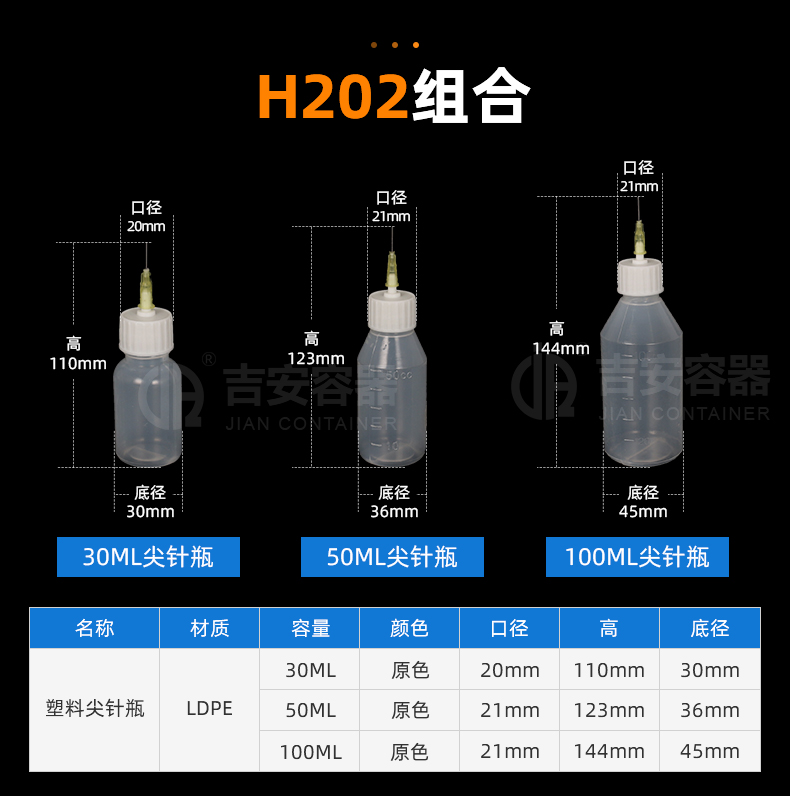 | 品名:30ml~100ml針頭瓶(H202) | |