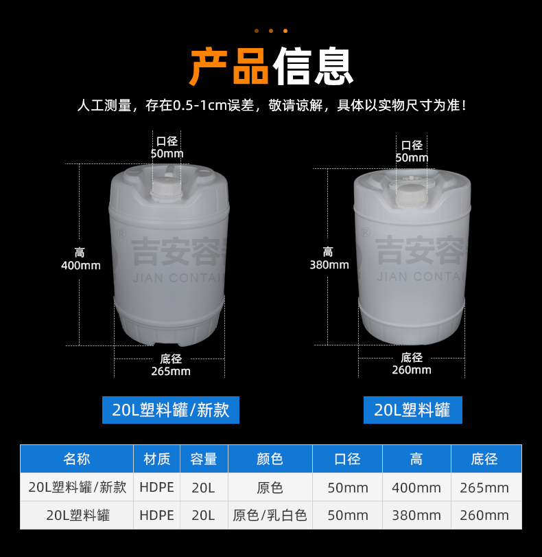 小口塑料桶:采用全新聚乙烯原料吹塑工藝制作而成,具有耐腐蝕,耐酸堿特性,小口設(shè)計(jì)密封性能強(qiáng),廣泛應(yīng)用于化工、清潔、食品、添加劑、汽車等各行業(yè)液體包裝。