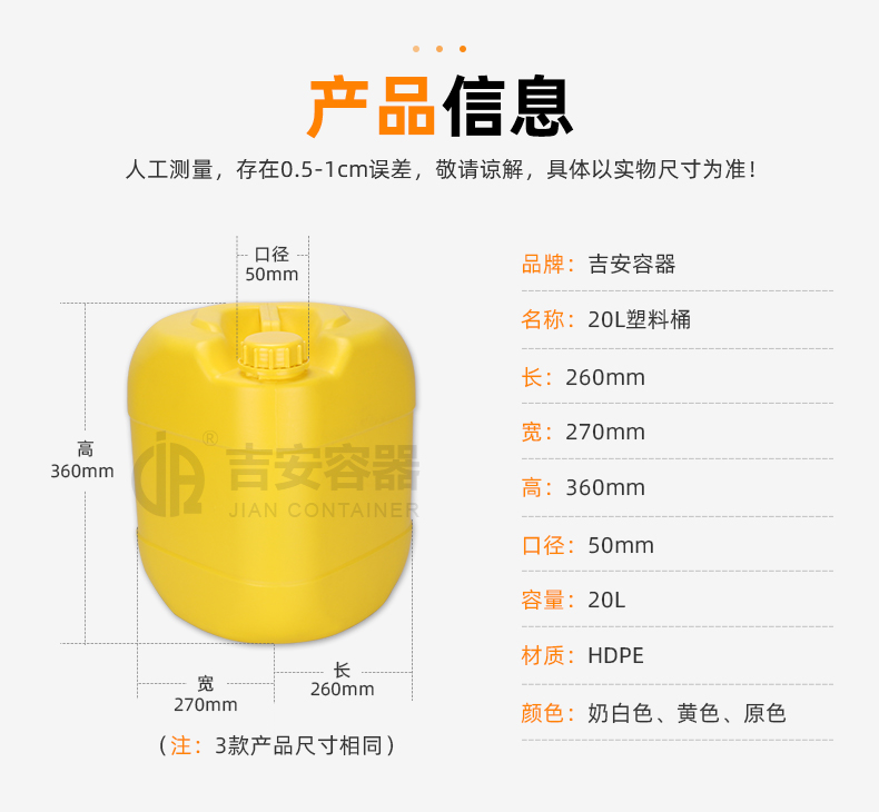 小口塑料桶:采用全新聚乙烯原料吹塑工藝制作而成,具有耐腐蝕,耐酸堿特性,小口設(shè)計密封性能強,廣泛應用于化工、清潔、食品、添加劑、汽車等各行業(yè)液體包裝。