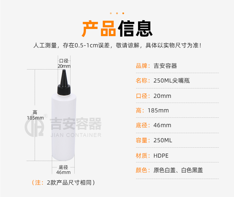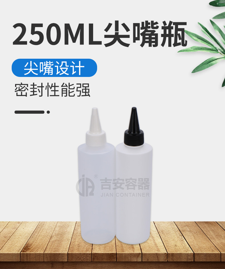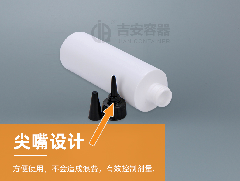 尖嘴瓶適用行業(yè)廣泛,多用于膠水包裝、眼藥水包裝、食品調(diào)料包裝,因其尖嘴特點,具備方便滴膠,操作時流量可控可調(diào),使用方便。