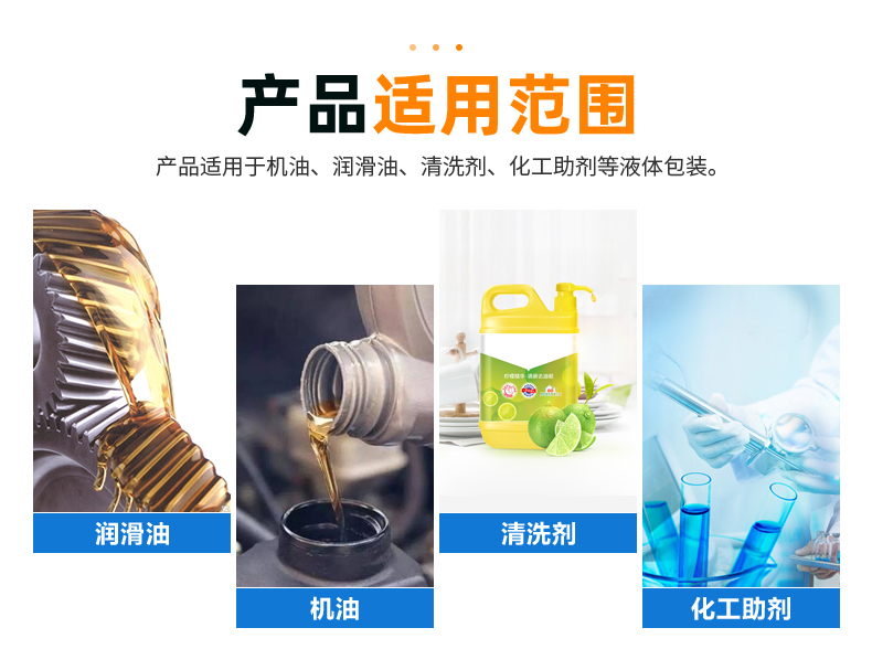 塑料扁罐采用HDPE原材料吹塑而成,具有良好的耐酸堿性及密封性,方形設(shè)計(jì)方便堆放,不占用空間,美觀實(shí)用。具備不變形,使用方便等特征,可根據(jù)客戶需求做印刷及貼膜,產(chǎn)品適用于尿素、機(jī)油、汽油、清洗劑、化工助劑、食品添加劑等液體包裝。