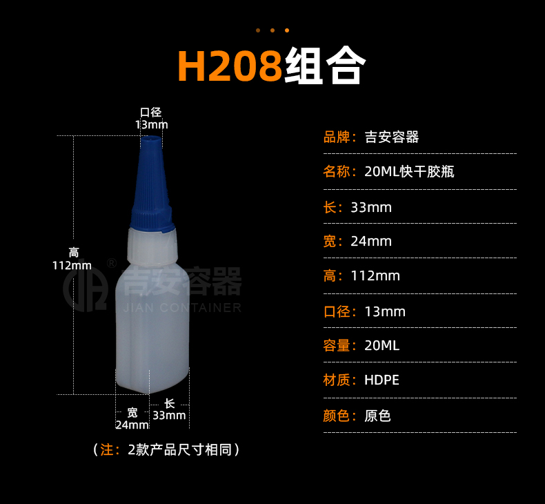 | 容量:20ml | 材質(zhì):瓶身-HDE,瓶蓋-HDPP |